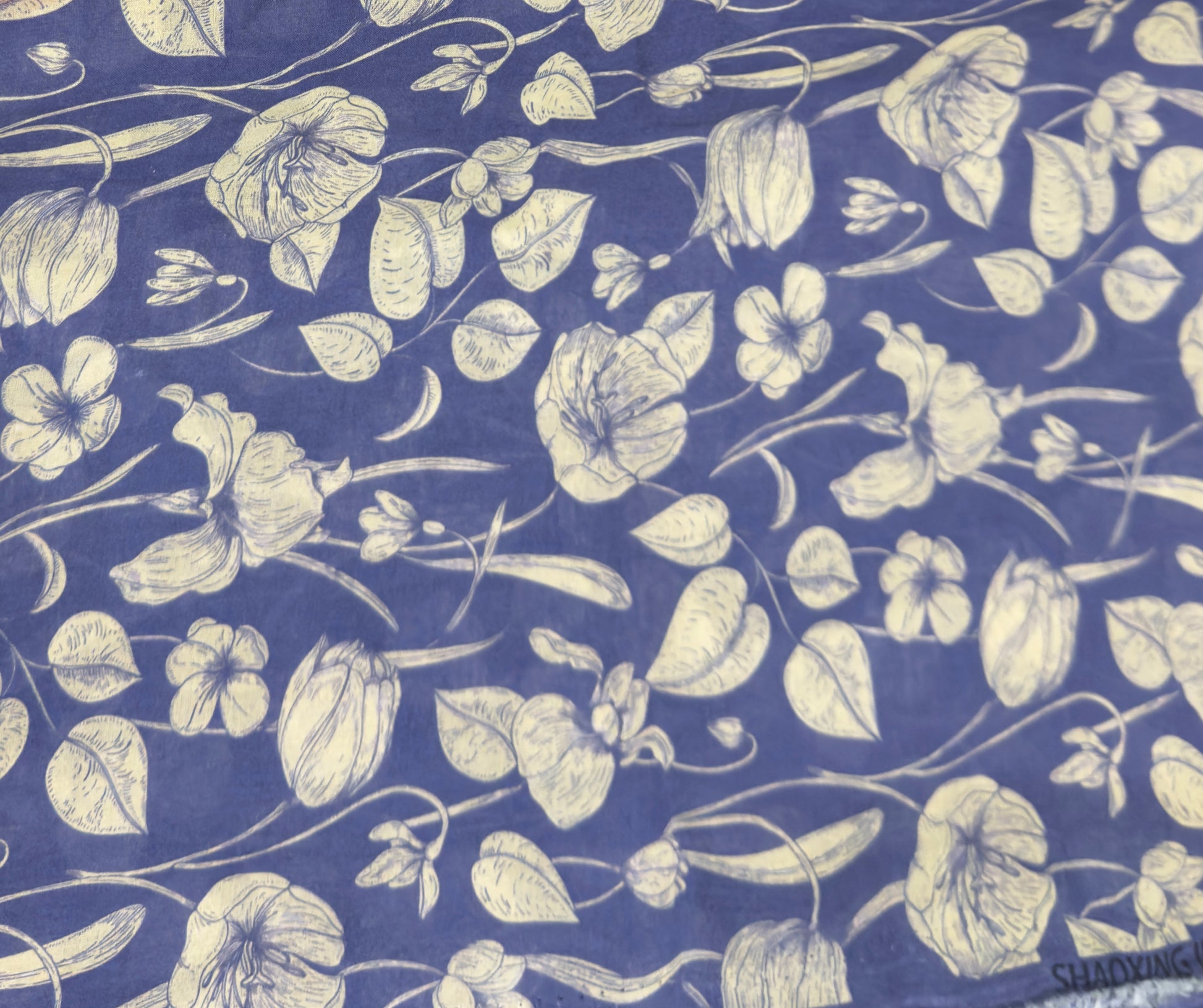 Our new purple-blue printed dress blends traditional print with a cool, modern palette. Soft on the skin, bold in color — perfect for festive days or refined evenings.