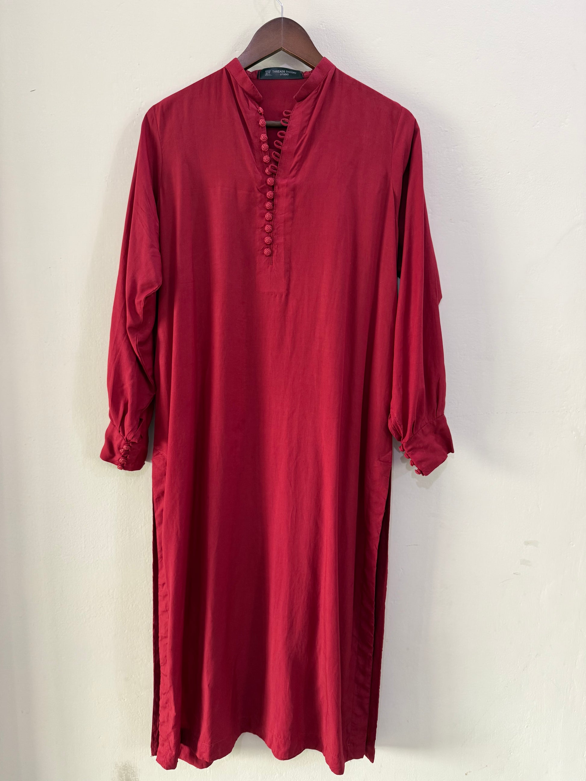 “A timeless solid red dress crafted for effortless elegance. Designed with a flattering silhouette and clean lines, it makes a bold statement while keeping the look chic and versatile. The rich red hue adds confidence and sophistication, perfect for both daytime outings and evening occasions. Lightweight, comfortable fabric ensures ease of wear, while the minimalist design allows you to dress it up or down with your favorite accessories.”